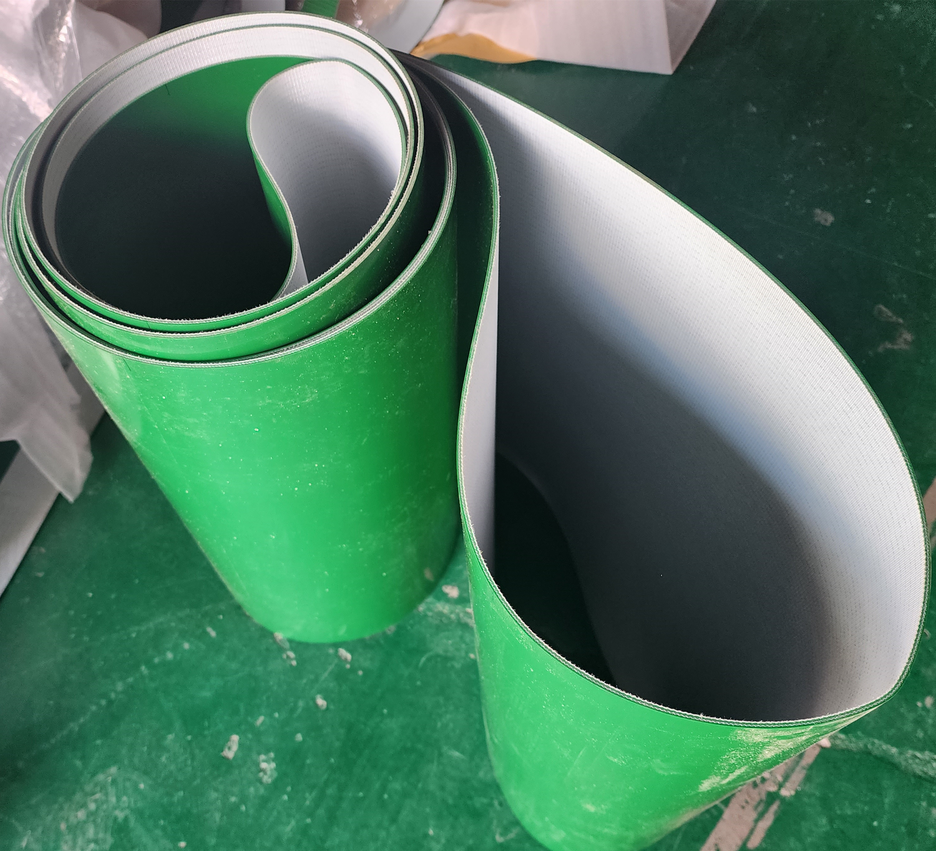 | ハイライト | 3つの層ポリ塩化ビニールpuのコンベヤー ベルト,平らなパターン ポリ塩化ビニールpuのコンベヤー ベルト,3つは緑ポリ塩化ビニールのコンベヤー ベルトに執ように勧める |